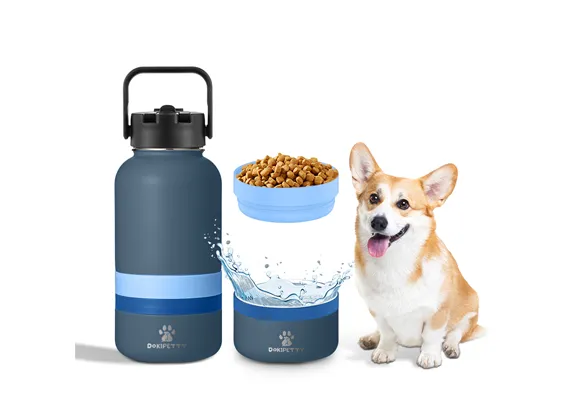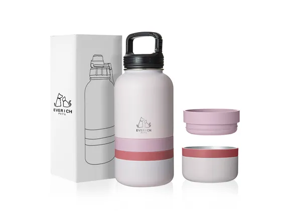 The 32oz stainless steel pet travel bottle (22024A) is designed for pet owners who love convenience on the go. It features a unique 3-in-1 detachable base, allowing you to store water, pet food, and treats separately. The single-wall structure keeps it lightweight and easy to carry, ideal for outdoor adventures, hiking, or travel. Available in a variety of colors and lid styles, this bottle can be fully customized to match your brand and customer preferences.
