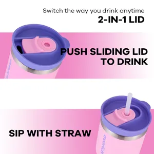 This versatile stainless steel tumbler features a smart 2-in-1 lid design that lets you effortlessly switch between sipping and using a straw. The press-and-slide mechanism offers smooth, convenient drinking on the go, while the insulated double-wall construction keeps beverages hot or cold for extended periods. Perfect for commuting, workouts, or daily use, it delivers durability, comfort, and temperature retention in one stylish bottle.