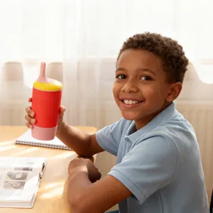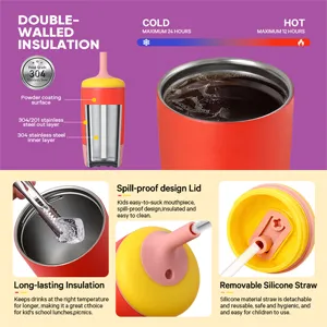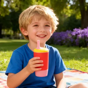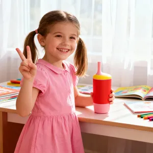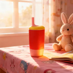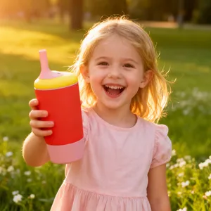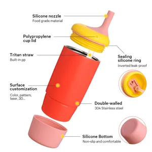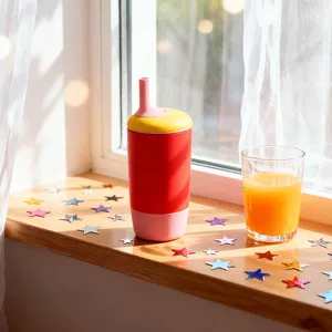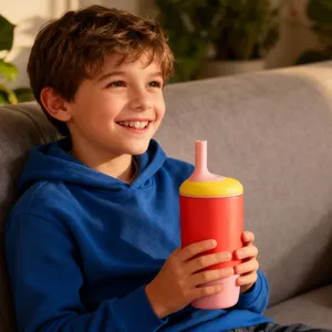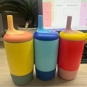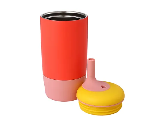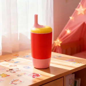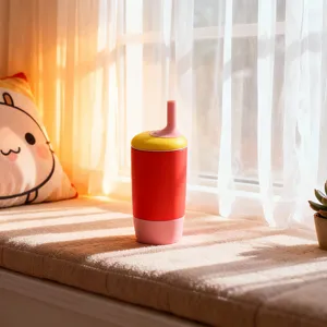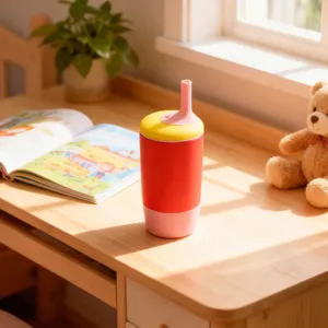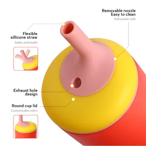 This cup features a soft, flexible silicone straw designed for safe and healthy daily use. The vent hole improves drinking comfort by ensuring smooth airflow, while the round lid can be customized with various colors to fit personal or branding needs. The removable spout allows easy cleaning, and the entire cup is dishwasher-safe for added convenience. Practical and user-friendly, it is ideal for children, travel, and everyday hydration.