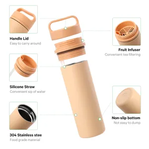 This versatile bottle features a wide-mouth design that makes cleaning effortless and allows easy ice filling for refreshing hydration anytime. The convenient handle lid ensures comfortable carrying, making it ideal for outdoor activities, travel, or daily use. Equipped with a built-in fruit infuser, it effectively separates tea leaves, fruits, or herbs, enhancing flavor while keeping the drinking spout clear. The thickened silicone sealing ring provides a 100% leak-proof guarantee, ensuring secure, spill-free transport. A practical, functional design perfect for lifestyle and fitness drinkware collections.